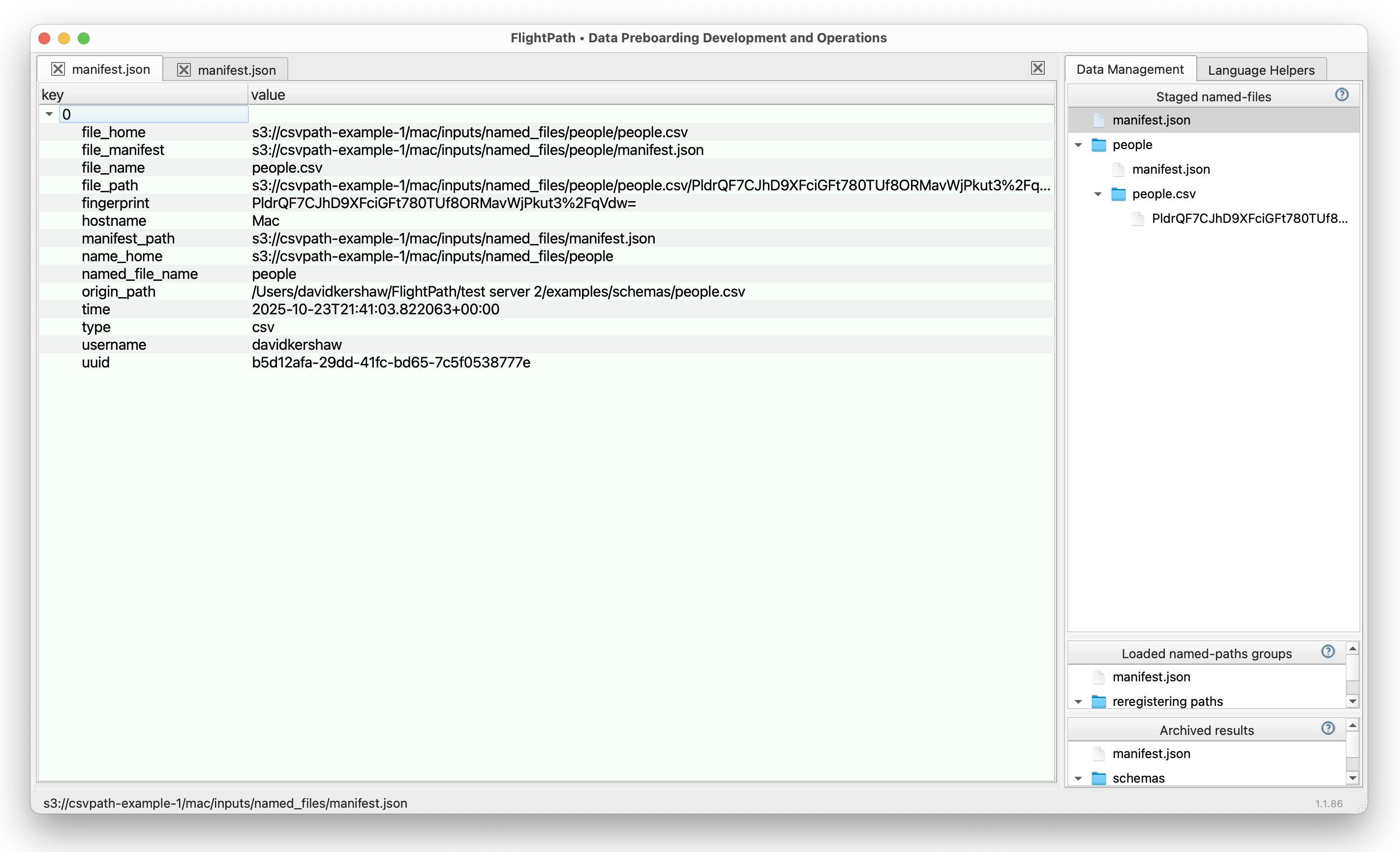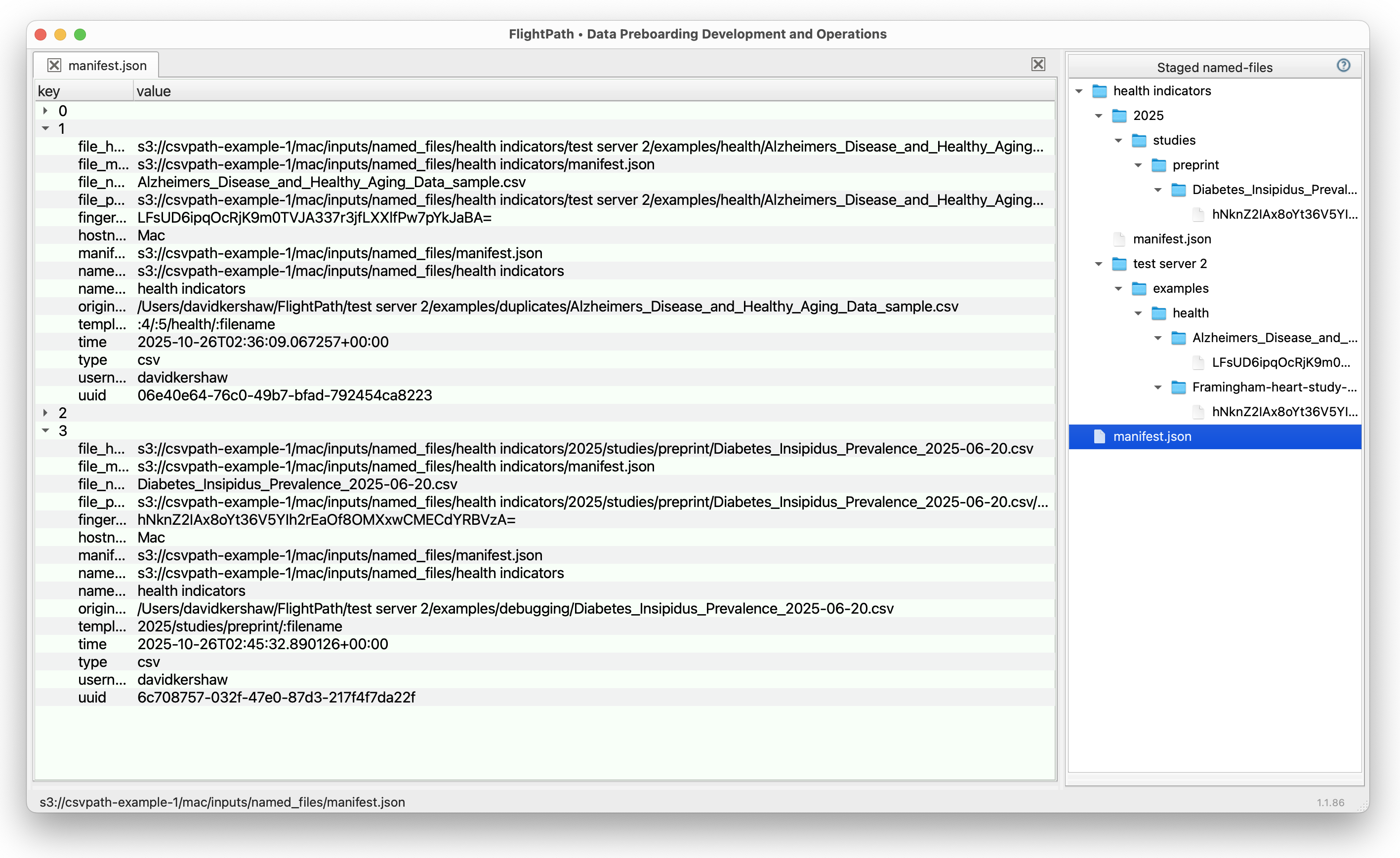 CsvPath Framework keeps every version of a named-file in an immutable store. You can always go back and see the exact bytes that were used in a run. And you can find that source from the run manifest by looking at: